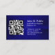 Ihr QR Code auf einer Visitenkarte mit einem blauen Hintergrund und Website URL auf der Rückseite.
