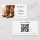 Visitenkarten mit einem modernen, künstlerischen Cowboy Boots Design. Ideal für Western-Trading-Shops und andere Geschäfte. Verwenden Sie den QR-Code für Ihren Online-Shop oder Ihre Website. Passen Sie den Text auf der Vorder- und Rückseite der Karte an. Braune und schwarze Farben. Verwenden Sie die Vorlage, um Ihre eigenen Visitenkarten zu erstellen.