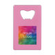 Individuelle moderne, elegante, einfache Vorlage Hochladen Image Foto oder Business Company Logo, Hinzufügen von Textnamen, QR Code, Website URL Personalisierte Barware & Bar Tools / Bar & Wine Zubehör / Flaschenöffner / trendige rosa Kreditkarte Flasche Öffnung.