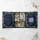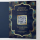 QR Code Wedding Blue Peacock Feathers Dreifach Gefaltete Einladung
