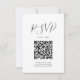 Einfache und florale schwarz-weiße QR Code Hochzeit rsvp Gehäuse Karte in modernen Kalligraphie. Diese Hochzeit in Urlaubsort-Karte kehrt zu meinen original Aquarellfarben-Blume und Paaren wunderschön mit der Hochzeitskunstwerkstatt Suite. Entworfen von Victoria Grigaliunas of Do Tell A Belle. Besuchen Sie www.zazzle.com/dotellabelle , um mehr Geld für Hochzeitsdesigns zu sehen.