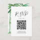 Einfache und tropische schwarz-weiß QR Code Hochzeit rsvp Gehäuse Karte in modernen Kalligraphie. Diese Hochzeit in Urlaubsort-Karte kehrt zu meinen ursprünglichen Aquarellpalmen-Blätter und Bambus zurück. Entworfen von Victoria Grigaliunas of Do Tell A Belle. Besuchen Sie www.zazzle.com/dotellabelle , um mehr Geld für Hochzeitsdesigns zu sehen.