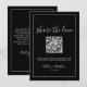 Niedliches und schlichtes modernes Schwarz-Weiß-Hochzeitsdesign. Ein Mix aus eleganter Schrift-Typografie und einem klassischen Serif-Schriftart. Ein minimalistischer Look mit einem schlichten, weißen Rand. Bearbeiten Sie den gesamten Text zu Ihren eigenen Informationen. Sie können sogar die Hintergrundfarbe auf alles ändern, was Sie gewollt haben! Ermuntern Sie die Gäste, "den Augenblick zu erfassen" oder "die Liebe gemeinsam zu nutzen" mit diesem Foto, das QR-Code-Karte, die Sie auf Empfang-Tischen haben können. QR-Code Schwarz-weiße Hochzeit Aktie Liebe Fotos Umschließungskarte