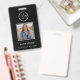 Eine minimalistische und elegante Schwarzweiß-Foto Mitarbeiter ID, die Sie personalisieren können. Ersetzen Sie das Foto-, Geschäfts- oder Firmenlogo und bearbeiten Sie den Text- und QR-Code auf der Rückseite. Ideal für Büro-, Geschäfts- oder Schularbeiten.