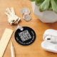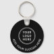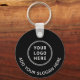 Moderner schwarzer Schlüsselanhänger für Ihr Unternehmen oder Ihre Organisation. Laden Sie Ihr Logo hoch, erstellen Sie einfach einen scannbaren QR-Code, der mit Ihrer Website verlinkt ist, und fügen Sie zwei weiße Textzeilen hinzu, z. B. Ihren Firmennamen, Ihren Slogan, danke, oder verlass leer.