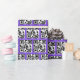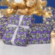 QR Code Happy Holidays Nachricht auf lila Hintergrund. Die Hintergrundfarbe kann geändert werden.
