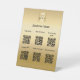 Ein Imitat goldener Hintergrund. Personalisieren Sie Ihr Firmenlogo und fügen Sie es hinzu. Platz für 6 QR Codes für Ihre Gäste.