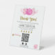 TABELLE TOP TABELLE PEDESTAL TABELLE SIGN QR-Code LOGO GOOGLE YELP oder jede andere Plattform REVIEW ANFORDERUNG - PINK Aquarell und SILVER Glitzer FLORAL BOHO Bohemische DIY Vielen Dank GOOGLE YELP ETC. Bewertung