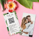 Diese online Hochzeitskarte RSVP, leicht anpassbar mit Ihren Online-UAWG und Ihrem eigenen QR-Code, um Ihre Gäste direkt auf Ihre Hochzeitswebsite zu schicken, zeigt eine wunderschöne Abbildung von rosa tropischen Blume und grünen Dschungel-Blätter und wurde erstellt, um sich mit unserer "Tropischen Jungle Wedding"-Kollektion abzustimmen. Die Kartenrückseite ist mit einem Ihrer besten Foto für die Verlobung anpassbar, um eine einzigartige Antwortgehäuse-Karte zu erstellen.
