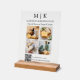 Modernes Minimalistisches Business Plaque Tabletop Clear Akryllische Schriftzeichen mit 4 Fotos. Schwarz & Weiß oder wählen Sie Ihre eigenen Farben. Fügen Sie dem QR Scan Code Ihre Website oder Web-Adresse für Social Media hinzu. Ermöglicht den Kunden, die Prüfung zu verwenden, um auf Informationen zu Ihren Produkten wie Produkten oder Menüelementen zuzugreifen. Ideal für Einzelhändler, kleine Geschäfte, kleine Kioske, Messen und Events, Gastfreundschaft, Salons, Wellness-Center, Bäckereien, Cafés, Restaurants, Bars und vieles mehr. Einfach mit Ihren Monogramm-Initialen, Firmennamen und Informationen, Fotos, Slogan oder sogar mit Ihrem Logo oder persönlichem Markendesign personalisieren.