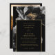 Diese elegante Schwarz-Gold-Blumen-Hochzeitseinladung kann personalisiert werden mit Ihren Informationen in der modernen Typografie und Ihre Hochzeitsdetails auf der Rückseite, zusammen mit Ihrem Hochzeitswebsite QR-Code und speziellem Foto. Entwickelt von Thisisnotme©