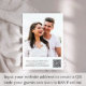 Moderne Hochzeitseinladung mit Ihrem Foto überlagert mit Ihrer individuellen Einladung und "Happily Ever After" in einer Mischung aus einfacher Typografie und einem schicken Drehbuch mit Swashes. Auf der anderen Seite, personalisieren Sie Ihre UAWG in eleganter Typografie und geben Sie Ihre Website-Adresse ein, um einen QR-Code für Ihre Gäste zu erstellen, um online zu scannen und um zusätzliche Hochzeitsdetails wie Unterkunft und Anfahrtsbeschreibung zu erhalten.