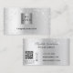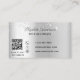 Ein elegantes Imitat silber aussehender Hintergrund mit Imitat Glitzer dekoriert. Personalisieren Sie Ihr Firmenlogo und Text auf der Vorderseite und fügen Sie es hinzu. Zurück: Vorlagen für Ihren Namen, Titel, Telefonnummer, E-Mail und Website-Adresse, QR-Code. Ideal für Unternehmerinnen, Berater, Geschäftsinhaber.