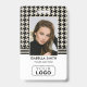 Mit diesem schicken und eleganten ID-Abzeichen schaffen Sie einen stilvollen ersten Eindruck. Moderne Vorlage mit dem ikonischen Hahnentrittmuster, gepaart mit kontrastierenden Streifen. Personalisieren Sie Ihren Namen, Ihre Jobbezeichnung, Ihr Firmenlogo, QR-Code und Ihre Kontaktinformationen. Der gesamte Text kann an Ihre geschäftlichen Bedürfnisse angepasst oder gelöscht werden. Dieses klassische Design ist ideal für viele verschiedene Arbeitsplätze und Berufe, einschließlich Mode-Stylist, Beauty-Berater, Creative Directors, Innenarchitekten, Firmenfachleute, Einzelhandelskräfte, Hotelmitarbeiter, kleine Unternehmen, Tagungsnamen und mehr! Farben: schwarz, weiß und cremefarben.