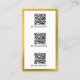 Eine moderne und minimale Imitat Gold Visitenkartenvorlage, die an Ihren Firmennamen, Text, Firmenlogo, digitale Kontaktdaten und 3 Scannable QR Codes angepasst werden kann. Passen Sie jeden QR Code an Ihre Social Media Links, Websites, Online-Shops etc. an. Ideal für Unternehmen, die nur online kontaktierbar sind und eine scannable digitale Kontaktkarte wünschen.