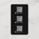 Eine moderne und minimale schwarze Visitenkartenvorlage, die an Ihren Firmennamen, Text, Firmenlogo, digitale Kontaktdaten und 3 scannable QR Codes angepasst werden kann. Passen Sie jeden QR Code an Ihre Social Media Links, Websites, Online-Shops etc. an. Ideal für Unternehmen, die nur online kontaktierbar sind und eine scannable digitale Kontaktkarte wünschen.