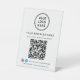 Modernes Tischschild für Ihr Unternehmen mit QR-Code für Kunden, um eine Zahlung zu machen, eine Liste Ihrer Produkte, Dienstleistungen und Preise zu sehen, Termine zu machen, sich zu registrieren, etc. Laden Sie Ihr Logo und Ihren QR-Code hoch und fügen Sie Ihren Firmennamen, Telefonnummer, Straßenadresse oder andere Informationen in einfacher Typografie hinzu. Fügen Sie Ihre instagram und facebook Benutzer-ID für Kunden, um Ihnen auf Social Media folgen.