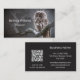 Foto von an owl in the night. With ohne Serif Fonts und scannbar qr code at the backside.