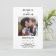 Freuen Sie sich auf stilvolle Hochzeitsfeiern mit elegantem QR-Code und Einladungen in minimalem Umfang. Mit nur einer Karte können Sie Hochzeitsgäste zu Ihrer anstehenden Feier einladen, alle wichtigen Details (wie Anfahrtsbeschreibung, Registrierung, Hotelunterkunft) angeben und die Website für die Organisation der uAwg's gelassen werden. Es werden keine zusätzlichen Gehäusekarten benötigt. Die 2 Bilder und alle Formulierungen sind einfach zu personalisieren. (IMAGE PLACEMENT TIP: Eine einfache Möglichkeit, ein Foto genau so zu positionieren, wie Sie es gewollt haben, besteht darin, es einzuschneiden, bevor Sie es auf die Zazzle-Website hochladen.) Das moderne minimalistische Schwarz-Weiß-Design mit zwei quadratischen Bildern des verlobten Ehepaares, zwei benutzerdefinierten QR-Codes und klassischer Schreibmaschinentypografie. Durch das Scannen der QR-Codes mit ihren Handys, werden die Gäste direkt auf die Hochzeitswebsite geschickt, um weitere Details zu erhalten und auf die Einladung zu antworten. Ein Online-uAwg verringert die Wahrscheinlichkeit, dass die Karten in der E-Mail verloren gehen. Es ist auch vielseitiger, da man für spezifischere Reaktionsinformationen frage, wie zum Beispiel Essensentscheidungen, Lebensmittelallergien und Gesangswünsche. Diese informelle und dennoch elegante Einladung macht eine stilvolle Ergänzung zu einem anstehenden besonderen Tag. Herzlichen Glückwunsch an die Braut und Bräutigam!