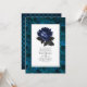 Halloween gotische Hochzeitseinladung mit blauer Rose und Vintagen Schädelmustern. Der QR-Code auf der Rückseite führt zu Ihrer Hochzeitsstelle, wo die Menschen mehr und uAwg lernen können.