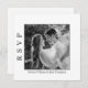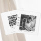 Mit dieser modernen und stilvollen RSVP-Karte können Sie Ihre Hochzeitserlebnisse noch weiter verbessern. Mit einem fesselnden Schwarz-Weiß-Foto des Ehepaares strahlt diese Karte Eleganz und Personalisierung aus. Auf der Rückseite erwartet Sie ein komfortabler QR-Code, mit dem Sie einfach online mit einem einfachen Scan UAWG machen können. Nutzen Sie die Einfachheit und Bequemlichkeit dieser Karte, die perfekt auf die moderne Hochzeit zugeschnitten ist. Individuell gestalten und personalisieren Sie jedes Detail, um Ihren einzigartigen Stil widerzuspiegeln und machen diese RSVP-Karte zu einem unvergesslichen Bestandteil Ihrer Hochzeitsfeier.