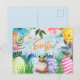 Senden Sie ein Lächeln in diesem Frühling mit dieser quacktastisch niedlichen Osterpostkarte! Ein flauschiges, kleines Entlein sitzt unter lebendigen Eiern und blühenden Frühlingsfloralen auf einem Aquarellgrund, alles unter einem spielerischen "Happy Oaster" Gruß. Ideal, um jedem Postfach einen zauberhaften Rahmen zu verleihen.