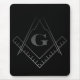 Ein Freimaurermousepad, welches das traditionelle Quadrat und den Kompass mit Einfügung G. zur Schau trägt.