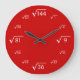 Diese Wanduhr weist weiße quadratische Wurzeln auf einem roten Hintergrund auf. Ideal für Mathematiklehrer, Studierende oder alle, die eine coole Uhr suchen.