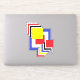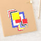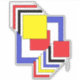 Dieses geometrische abstrakte Kunstwerk von Richard H. Fay zeigt eine Reihe von Quadraten in den Primärfarben Rot, Blau und Gelb sowie Schwarz und Weiß.