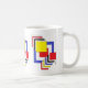 Dieses geometrische abstrakte Kunstwerk von Richard H. Fay zeigt eine Reihe von Quadraten in den Primärfarben Rot, Blau und Gelb sowie Schwarz und Weiß.