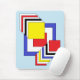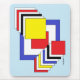Dieses geometrische abstrakte Kunstwerk von Richard H. Fay zeigt eine Reihe von Quadraten in den Primärfarben Rot, Blau und Gelb sowie Schwarz und Weiß.