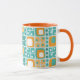 Quadrate der Mitte und Dots Muster Aquamarin, oran Tasse
