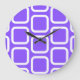 Quadrate in Weiß und Violett Kissen Große Wanduhr