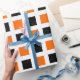 Quadrate - Schwarz und Orange auf Weiß Geschenkpapier