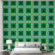 Dieses Hintergrundbild zeichnet sich durch ein dynamisches Muster aus, das aus konzentrischen Quadraten in verschiedenen Grün- und Blautönen besteht. Das Design erinnert an die Retro-Ästhetik, mit kühnen Farben und geometrischen Formen, die einen visuell ansprechenden und energiegeladenen Look schaffen. Jedes Quadrat wird innerhalb eines anderen geschachtelt, wodurch ein mehrschichtiger Effekt entsteht, der dem allgemeinen Muster Tiefe und Dimension verleiht. Diese Tapete ist ideal geeignet, um jedem Zimmer eine lebendige und künstlerische Touch hinzuzufügen und eignet sich somit für Räume wie Bäder, Wohnzimmer oder sogar kreative Arbeitsräume.