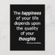 Feiern Sie inspirierend Zitate über das Leben und Glück. Qualitäts-Gedanken? Dann ein glückliches Leben… Das tatsächliche Zitat vom römischen Kaiser und vom Philosophen Marcus Aurelius ist: "Das Glück Ihres Lebens hängt nach der Qualität Ihrer Gedanken ab: deshalb schützen Sie dementsprechend und mach's gut, dass Sie keine Begriffe unterhalten, die unpassend sind zum Vorzug und zur angemessenen Natur." Schwarzweiss.