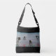 Crossbody-Beutel mit Quallen Silhouetten schwebend in blauem Wasser mit Blasen über bunten Korallen. Originelle Kunstwerke von Ray Bean sind Aquarell und Tinte auf Aquarellpapier.