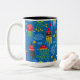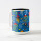 Albern, bunt, lustig, whimsical Quallen und Oktopus mit Sombreros, Derby-Hüten, lockigen Haaren, Augen, Lächeln, und einige tragen Schuhe auf einem blauen Hintergrund mit Sternen aus Rot und Gold.