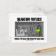 Wenn Sie von der Kopenhagener Interpretation der Quantenmechanik wissen, werden Sie eines dieser Geschenke genießen, das die dualistische Natur der Wellenpartikelphysik zeigt, mit einer Illustration, ob Schrödingers Katze tot und/oder lebendig ist in der hypothetischen Box. Das Sprichwort "Quantenphysik, wo sich Physik und Metaphysik treffen" kommt mit dem "Zunge-in-Wange-Physik" zusammen. Lassen Sie andere die Welt der Quantenmechanik und Quantenphysik heute mit einem dieser unvergesslichen Konversationsgeschenke in den Griff bekommen!