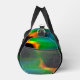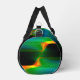 Ein blaues, grünes und orangefarbenes Fraktal mit Sternen im Hintergrund, eine Darstellung des Physikphänomens, die Quantenverwicklung genannt wird. Passen Sie Ihren eigenen Text an.