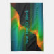 Ein blaues, grünes und orangefarbenes Fraktal mit Sternen. Fügen Sie Ihren eigenen Text hinzu.