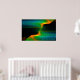 Ein blaues, grünes und orangefarbenes Fraktal mit Sternen. Fügen Sie Ihren eigenen Text hinzu.