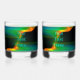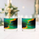 Ein blaues, grünes und orangefarbenes Fraktal mit Sternen im Hintergrund, eine Darstellung des Physikphänomens, die Quantenverwicklung genannt wird. Passen Sie Ihren eigenen Text an.