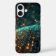 Dive deep into the energy of the digital frontier. This visually striking phone case features a dynamic, abstract representation of a massive data network or futuristic infrastructure. Glowing orange and vibrant teal/blue particles illuminate the dark background, simulating an intense, high-speed data flow across a vast digital landscape. The shallow depth of field and bokeh effects give the design a cinematic, hi-tech feel, perfect for fans of cyberpunk and cutting-edge technology.