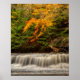 Schöne Herbstfarben auf den Bäumen umrahmen diesen breiten Wasserfall. Der Wasserfall heißt Quarry Rock Falls und befindet sich im South Chagrin Reservat der Metroparks Cleveland Ohio.