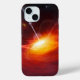 Das Konzept des Künstlers von Quasars. Quasare sind helle, energetische Regionen um riesige, aktive schwarze Löcher in galaktischen Zentren. Obwohl immens mächtig und über Milliarden von Lichtjahren sichtbar, sind Quasare eigentlich ziemlich winzig, zumindest im Vergleich zu einer ganzen Galaxie. Quasare erstrecken sich über ein paar Lichtjahre, und ihre inneren Bereiche, in denen Hochgeschwindigkeits-Winde ausstrahlen, vergleichen sich ungefähr in ihrer Größe nur mit der unseres Sonnensystems. Es dauert etwa zehn Stunden, bis ein Lichtstrahl diese Entfernung überquert. Künstlerische Darstellung von ULAS J1120+0641, ein sehr entfernter Quasar angetrieben von einem schwarzen Loch mit einer Masse zwei Milliarden mal so groß wie die der Sonne.