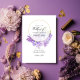 Aquarellviolett - lila Blütenhochzeit mit goldenem geometrischem Rahmen, der auf Ihre Eventspezifikationen zugeschnitten ist. Ideal für jede Art von Thema oder Gartenhochzeit. Der QR-Code auf der Rückseite führt zu Ihrer Hochzeitsstelle, wo die Menschen mehr und uAwg lernen können.