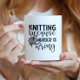 Diese Tasse ist ideal für Strickerinnen, die ihre Zeit damit verbringen, schöne Dinge mit Garnen zu kreieren. Das Sprichwort "Stricken, weil Mord falsch ist" ist eine großartige Möglichkeit, Ihre Liebe des Strickens und Ihr Spaß zu zeigen.