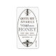 Personalisieren Sie mit Ihrem Firmennamen, Honigsorte, Honigbeschreibungen, Heimatstadt und Nettogewicht von Honig. Ovale Ränder und Vintage Bienenabbildungen auf weißem Hintergrund. Umrechnung des Nettogewichts von Honig: 8 kg (227 g), 12 kg (340 g), 16 kg (454 g), 32 kg (907 g), 5 kg (2,27 kg).
