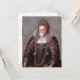 Königin Elizabeth I. mit mehreren Perlenketten, die ein weißes Kaugummi blasen